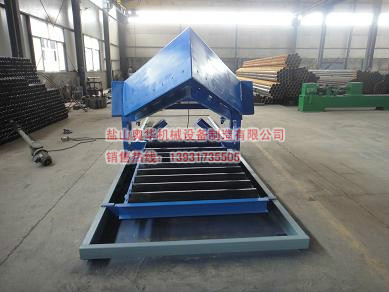 2, putting out, put down the discharge plow head, unloading plow head plow handle at the same time pull up the roller frame. The height of the roller reaches the theoretical height of the conveyor, the belt and the angle adjusting roller are flattened, the discharging plow head contacts with the adhesive tape, and the conveyor completes the discharging.